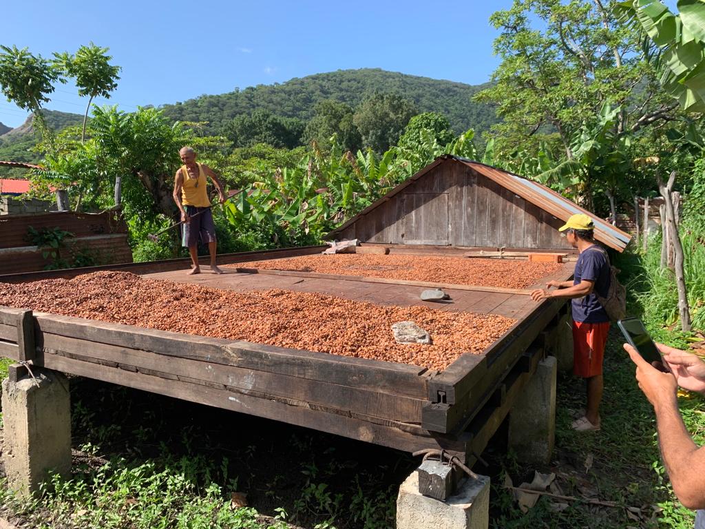 Marino trocknet vor seinem Haus Kakao