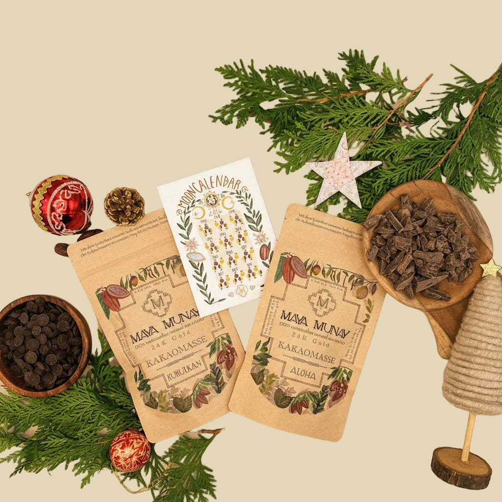 Tauche ein in die Welt des herzöffnenden Kakaos mit unserem exklusiven Bundle aus Mayamunay Kakao-Bruchstücken Aloha & Kakaodrops Kukulkan – zwei kraftvolle, naturbelassene Produkte, die dein Kakao-Erlebnis auf ein neues Level heben