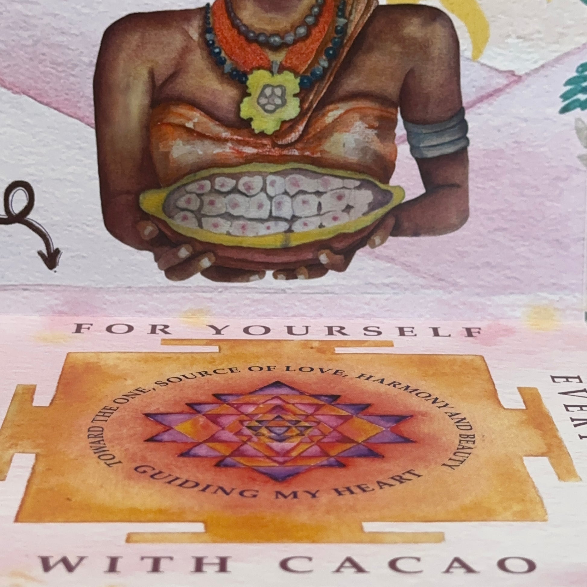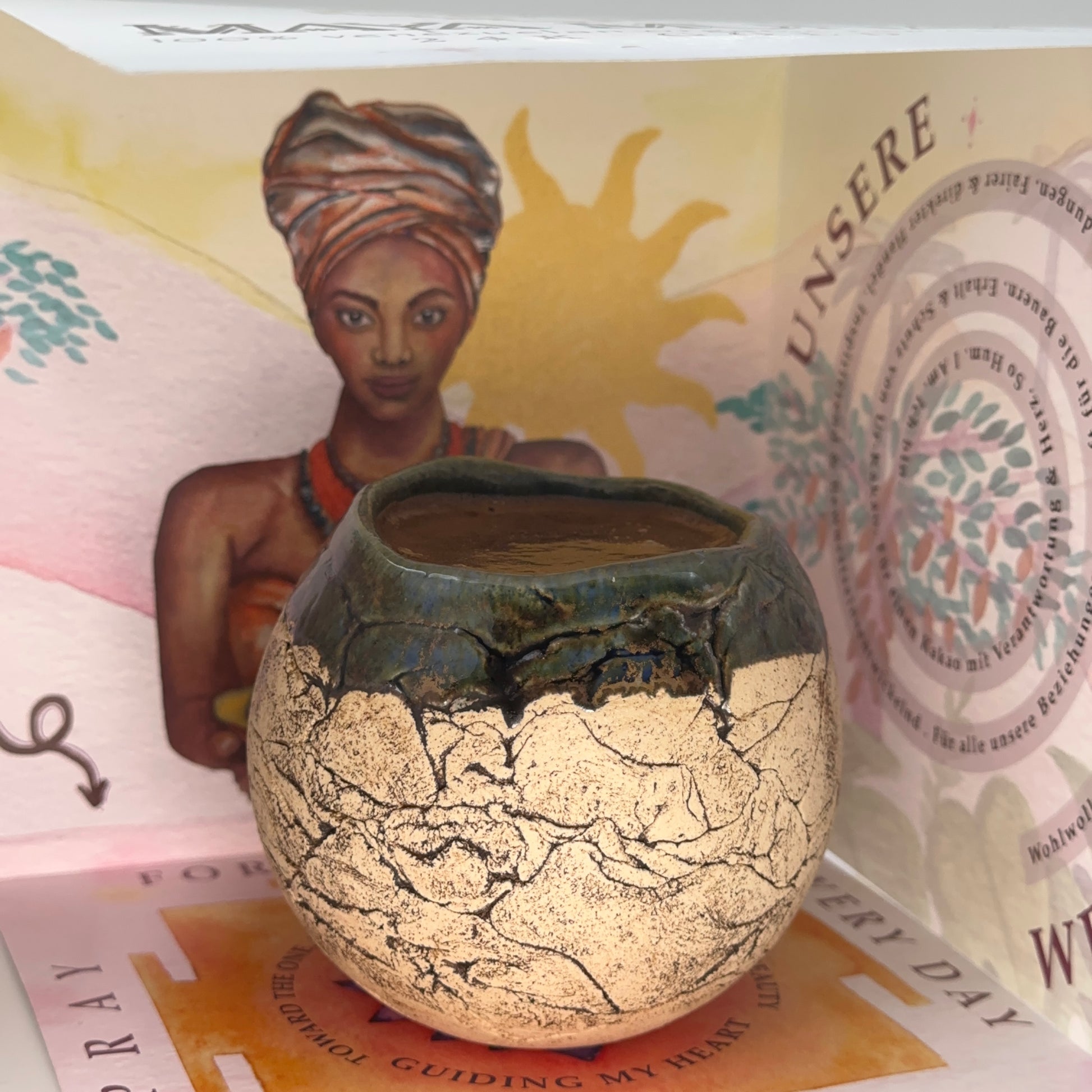 Wir hatten unzählige Ideen, welche Gebete wir auf der Rückseite platzieren könnten – dort, wo du deine Kakaotasse abstellen und energetisieren kannst.