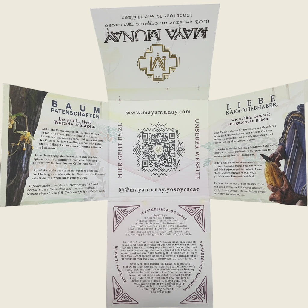 Ursprünglich wollten wir den Flyer vollständig in der Form des Andenkreuzes (Chakana) gestalten, das du auch in unserem Logo findest. Die Umsetzung war jedoch in der Druckerei noch nicht realisierbar – und auch die Frage „Wie faltet man so etwas eigentlich?“ blieb offen.